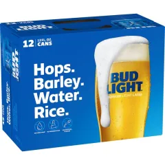 Details Ingredients Hops, barley, water, rice. Product features Bud Light is a premium light lager with a superior drinkability that has made it the best-selling and most popular beer in the United States. Bud Light is brewed using a blend of premium aroma hop varieties, both...