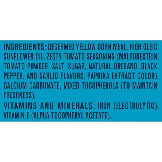 Details Ingredients Degermed Yellow Corn Meal, High Oleic Sunflower Oil, Zesty Tomato Seasoning (Maltodextrin, Tomato Powder, Salt, Sugar, Natural Oregano, Black Pepper, and Garlic Flavors, Paprika Extract Color), Calcium Carbonate, Mixed Tocopherols (To Maintain Freshness). Vitamins and Minerals: Iron (Electrolytic), Vitamin E (Alpha Tocopheryl Acetate). Show more Product features Make every little bite count with Gerber Lil' Crunchies Baked Corn Snack. Each serving is made with 2g of whole grain goodness and never any artifical flavors, artificial colors and NO GMOS. Gerber Lil Crunchies has the ideal texture that is easy to chew and swallow and is sized just right for older babies learning to pick up. One (1) 1.48 oz container Baked with care and 2 grams of whole grains per serving No Artificial Flavors or Artifical Colors Non-GMO: not made with genetically engineered ingredients Head to MyGerber.com to meet Dotti, your on-call personal baby expert, or call us anytime 24/7 at 1-800-284-9494 Special Features No Net Quantity of Content 6.0 X Infants through 12 Months 16 Pieces (7g)
