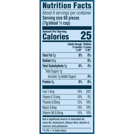 60 Pieces (7g/About 1/2 Cup) Infants through 12 months