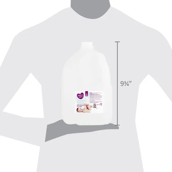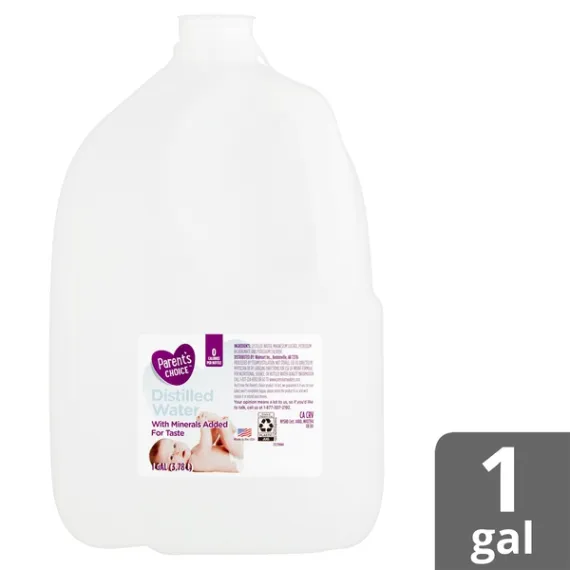 Details Ingredients Distilled Water, Magnesium Sulfate, Potassium Bicarbonate, Potassium Chloride Product features With Parent's Choice Distilled Water, you can be certain you're getting the purest, cleanest water available for your little loved one. The steam distillation process removes contaminants, chemicals, and bacteria leaving behind perfectly pure water. With minerals added for taste, this distilled water is perfect for diluting juice or for adding to formula or infant cereal. Use Parent's Choice Distilled Water as a handy alternative to tap water to ensure you are giving your child the very best start in life. Parent's Choice provides parents with baby and toddler products you need at a price that won't push your budget over the edge. We offer everything you need from bath time to bed time and every time in between, all with the high quality we know your little one needs. Parent's Choice is conveniently available online and in Walmart stores nationwide, allowing you to stock up, save money and live better. 1-gallon bottle Distilled water With minerals added for taste 0 calories per bottle Processed by steam distillation Recyclable container Special Features 1-gallon bottle