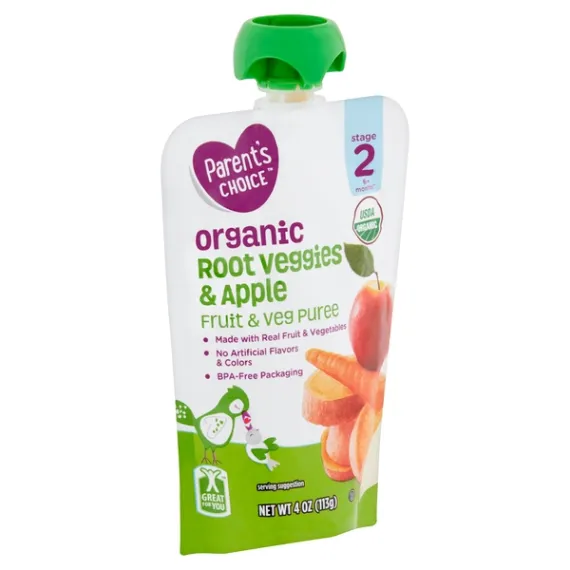 Parent's Choice Organic Root Veggies & Apple, Stage 2, 4 oz Pouch