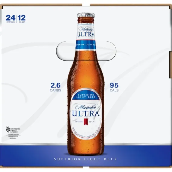 Details Product features Michelob ULTRA is the superior light beer brewed for those who go the extra mile to live an active, balanced lifestyle. Containing only 95 calories and 2.6 carbs, Michelob ULTRA is a light lager brewed with the perfect balance of Herkules hops and wholesome grains, producing a light citrus aroma and a crisp, refreshing finish. From four of nature's simplest ingredients—barley, hops, yeast and water—we brew some of the most satisfying, complex beers. But it takes time, patience and skill to get it just right. Here's how we do it; we think you'll appreciate the results. Michelob ULTRA is a superior light beer best consumed while hanging out and socializing, cooking or during a meal. Michelob ULTRA contains only 95 calories and 2.6 carbs, so you can enjoy the crisp, refreshing taste of Michelob ULTRA without compromising your active lifestyle. Live Fit, Live Fun, Live ULTRA. Michelob ULTRA contains 0.6 g protein per 12 oz. serving. (Note: Because brewing is a natural process, values are approximate and may vary slightly). 4.2% ABV Michelob ULTRA is a product of Anheuser-Busch InBev, the World's largest brewer. Our Dream is to be the Best Beer Company Bringing People Together For a Better World! Special Features 2.6 grams carbs/95 calories. Exceptionally smooth taste.
