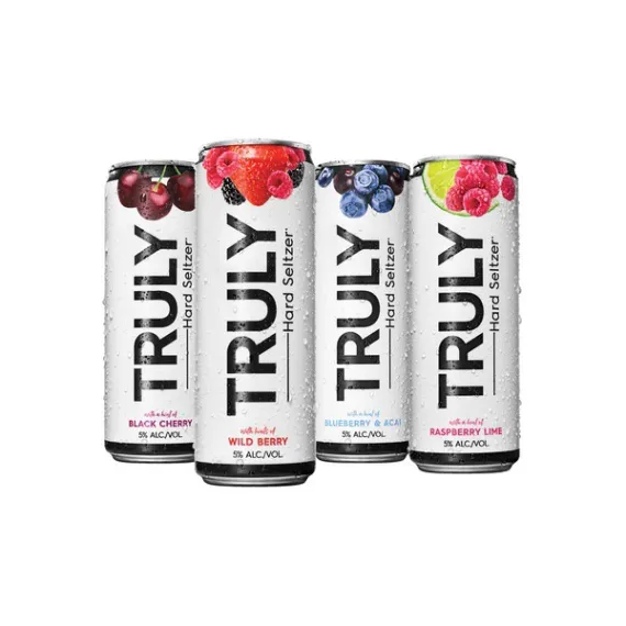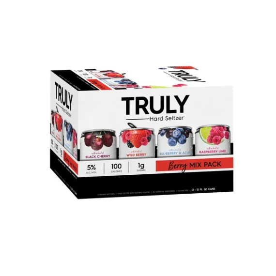 Details Ingredients Filtered Water, Alcohol from Cane Sugar, Natural flavors, Cane Sugar, Citric Acid, Carbon Dioxide, and Mandarina Hops. Product features Enjoy a refreshing drink with Truly Spiked and Sparkling. It's made with natural flavors and contains no artificial sweeteners. This spiked sparkling water has 5 percent alcohol and has only 100 calories and 2 grams of carbs. The handy pack of 12 cans is easy to store in a refrigerator or cooler. Truly Spiked and Sparkling Berry Mix, 12-Pack, 12 fl oz Cans: Truly Spiked & Sparkling Berry Mix, 12 pack, 12 fl oz cans