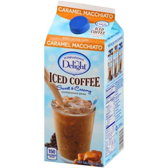Details Ingredients Coffee Filtered Water, Coffee , Skim Milk, Cane Sugar, Cream, Contains 2 or Less of Natural Flavor, Gellan Gum Product features International Delight Caramel Macchiato Iced Coffee, 0.5 gal International Delight Caramel Macchiato Iced Coffee: Sweet and creamy Coffeehouse drink Ultra-pasteurized Kosher International Delight Caramel Macchiato Iced Coffee: Sweet and creamy Coffeehouse drink Ultra-pasteurized Kosher Net Quantity of Content 8 X 1 cup