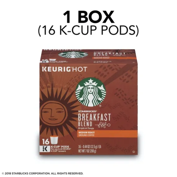 Starbucks Breakfast Blend Medium Roast Single Cup Coffee for Keurig Brewers, 1 Box of 16 (16 Total K-Cup Pods)