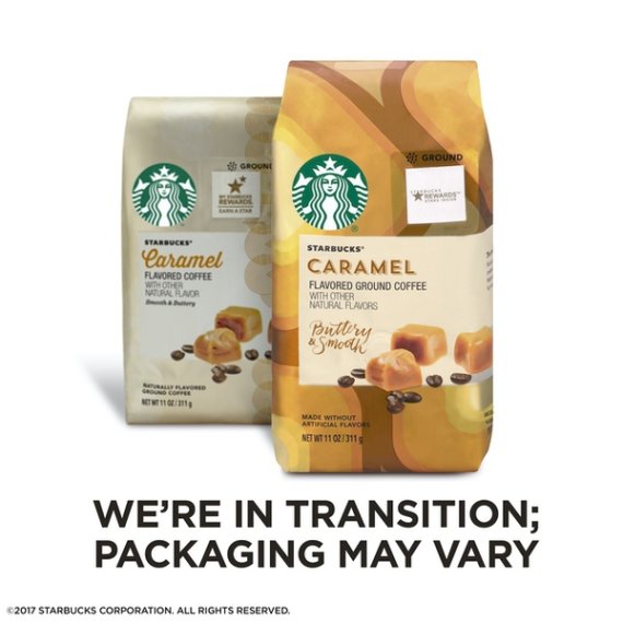 Details Ingredients GROUND COFFEE, NATURAL FLAVORS. Product features So simple. So sweet. Caramel flavor adds just the right touch of richness to this medium-roast coffee. Create moments to savor with every single-serving cup, from the brewing aroma to the very last sip. Add some tasty fun to your cup before brewing: marshmallows, almond extract or hot chocolate mix. Starbucks Caramel Flavored Coffee has a smooth, medium-roasted coffee with buttery caramel flavor to satisfy sweet cravings Starbucks flavored coffees have the natural, café-inspired flavors you love Enjoy the Starbucks coffee you love without leaving the house For finest taste, use cold, filtered water and store ground coffee in a cool, dark place Each pack includes an 11-ounce bag of ground Starbucks coffee Special Features With other natural flavors