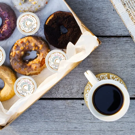 Details Ingredients ARABICA COFFEE, NATURAL AND ARTIFICIAL FLAVORS Product features The Original Donut Shop Coconut Mocha single serve K-Cup pods are for those who prefer a coconut-topped chocolate donut in, rather than beside, their coffee. Full-flavored and easy going, this medium roast flavored coffee embodies one of the best things in life - simply great coffee. This is an extra bold variety, so each pod contains more 100% Arabica coffee than regular K-Cup pods. These single-serve K-Cup pods are compatible with all Keurig K-Cup Pod Single-Serve Coffee Makers and brew up to 12 oz. of The Original Donut Shop Coconut Mocha coffee each. Each K-Cup pod is filled with the freshest ground coffee and brews a perfect, great tasting cup of coffee, every time. Certified Orthodox Union Kosher and contains no artificial ingredients. Medium roast coffee with the taste of coconut-topped chocolate donut Extra bold (contains more coffee than regular K-Cup pods) Medium roast, caffeinated coffee Ensure high-quality coffee every time with pods specially designed to work in Keurig brewers Special Features Keurig brewed. Artificially flavored coffee. The original coffee. Born in the Great Northwest, Coffee People celebrates a quirky, down-to-earth attitude with its own special brew of bold, flavorful coffees. Now you can enjoy this popular coffee with all its personality - one perfect cup at a time. Bold coffee. Bold personality. Packed in K-Cup packs for use in Keurig brewers. All of the fun, none of the calories. A rich chocolate donut, topped with flakey coconut, dipped into your favorite mug. For more information about our products contact: www.GreenMountainCoffee.com. www.Keurig.com. This package is recyclable.