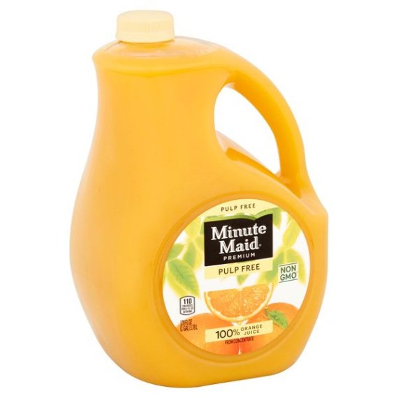 Details Ingredients 100% ORANGE JUICE FROM CONCENTRATE CONTAINS PURE FILTERED WATER, PREMIUM CONCENTRATED ORANGE JUICE. Product features Prefer a pulp-less OJ? Minute Maid Pulp Free has you covered. You get a smooth, great-tasting, 100% orange juice, minus the orange bits. Product Features Pasteurized 110 calories per 8 fl oz serving From concentrate No added sweeteners or preservatives Kosher Bottle - Plastic - Widely Recycled PETE - 1 Produced for The Coca-Cola Company, Atlanta, GA, 30313, U.S.A. www.minutemaid.com © 2016 The Coca-Cola Company. Patent D623,065 Special Features Family size Net Quantity of Content 16 X 8 fl oz