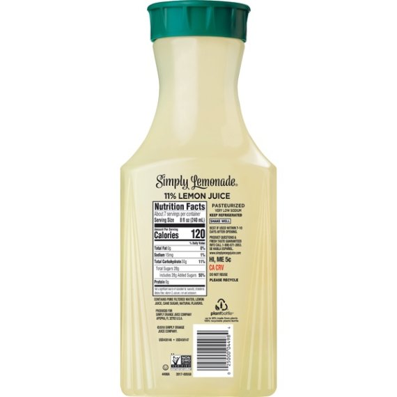 Details Ingredients INGREDIENTS: CONTAINS PURE FILTERED WATER, LEMON JUICE, CANE SUGAR, NATURAL FLAVORS. Product features Simply adheres to strict standards to ensure that Simply Lemonade products are the absolute best. With Simply Lemonade, you can see the juicy goodness inside because it only uses transparent, proprietary packaging. Simply takes pride in guaranteeing fresh taste. The product is gluten-free and certified Kosher by OU. The bottle is 100% recyclable. What’s more, you can carry a Simply Lemonade single-serve bottle along anywhere, to enjoy for yourself! Enjoy this refreshing, never-from-concentrate alternative to homemade lemonades. This premium, non-GMO Project Verified, all-natural lemonade is free of colors, artificial flavors and added preservatives ‘Fresh Taste Guarantee’— it is a promise that's printed right on the seal of every Simply carafe. Honestly Simple- Simply uses only simple ingredients that are easily recognizable Sip the delicious, thirst-quenching, fresh taste of real lemons. Nothing less! Net Quantity of Content 7.0 X 8 fl oz