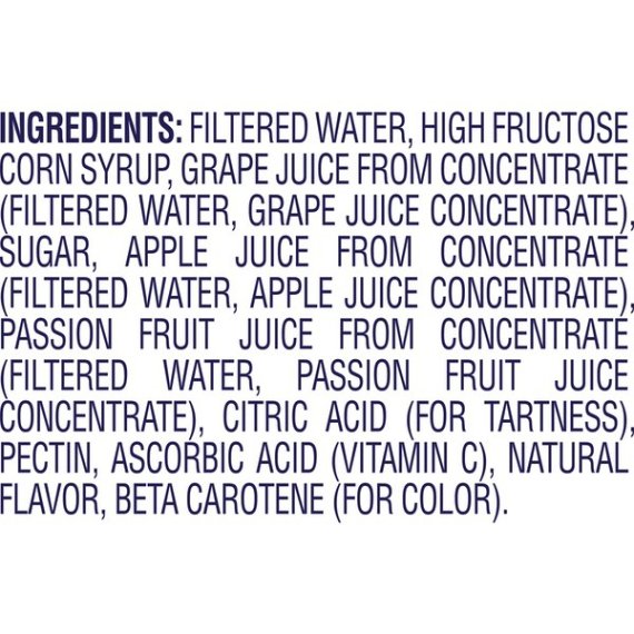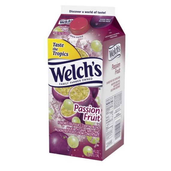 Details Ingredients FILTERED WATER, HIGH FRUCTOSE CORN SYRUP, GRAPE JUICE FROM CONCENTRATE (FILTERED WATER, GRAPE JUICE CONCENTRATE), SUGAR, APPLE JUICE FROM CONCENTRATE (FILTERED WATER, APPLE JUICE CONCENTRATE), PASSION FRUIT JUICE FROM CONCENTRATE (FILTERED WATER, PASSION FRUIT JUICE CONCENTRATE), CITRIC ACID (FOR TARTNESS), PECTIN, ASCORBIC ACID (VITAMIN C), NATURAL FLAVOR, BETA CAROTENE (FOR COLOR) Show more Product features Welch's Refrigerated Passion Fruit Cocktail is bursting with the sweet, rich flavor of juicy passion fruit. You can trust the goodness of Welch's: There's 20% daily value of Vitamin C per serving, with no artificial flavors or preservatives. And you can feel great about buying Welch's, because we're owned by farmer families who have been farming their land for as many as seven generations. This is a single 59 fl. oz. carton of refrigerated juice. UNIQUE, DELICIOUS FLAVOR : bursting with the sweet, rich flavor of juicy passion fruit. NOTHING YOU DON'T WANT: We never add artificial flavors or preservatives to our refrigerated Passion Fruit Cocktail. GOOD SOURCE OF VITAMIN C: 20% daily value of Vitamin C in every serving. QUENCH YOUR THIRST: Refreshingly fruity. FARMER OWNED, FAMILY GROWN: 100% of profits go to the American family farmers who own Welch's.! Net Quantity of Content ABOUT 7 X 240 ml