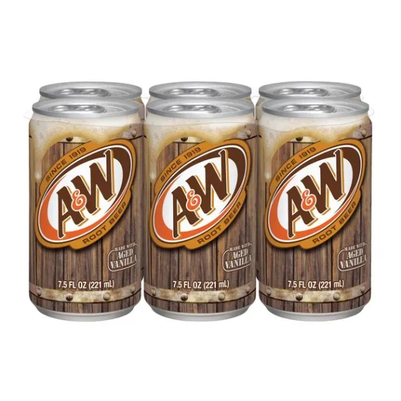 Details Ingredients CARBONATED WATER, HIGH FRUCTOSE CORN SYRUP, CARAMEL COLOR, SODIUM BENZOATE (PRESERVATIVE), NATURAL AND ARTIFICIAL FLAVORS, QUILLAIA EXTRACT Show more Product features Treat yourself to a deliciously refreshing American classic with A&W Root Beer. A&W Root Beer is caffeine free, and it's made with aged vanilla for a sweet and smooth taste that has become the standard in root beer soft drinks. A&W is best when enjoyed in an ice-cold mug or with vanilla ice cream for a delicious root beer float. Make your day a little bit sweeter with the rich and flavorful taste of A&W Root Beer. Made with aged vanillaCaffeine free with natural and artificial flavorsOne 6-pack of 7.5 fluid ounce cans