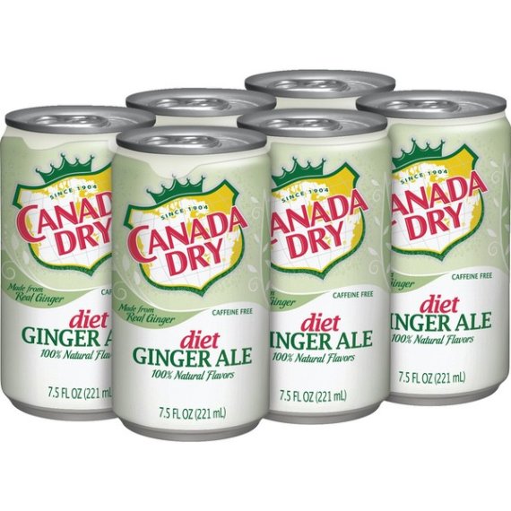 Details Ingredients CARBONATED WATER, CITRIC ACID, SODIUM CITRATE, SODIUM BENZOATE (PRESERVATIVE), MALIC ACID, ASPARTAME, CARAMEL COLOR, NATURAL FLAVORS, ACESULFAME POTASSIUM, CALCIUM DISODIUM EDTA (PRESERVE FLAVOR) Show more Product features Any time is a great time for the crisp goodness of Diet Canada Dry Ginger Ale. Never skimping on quality, Diet Canada Dry Ginger Ale offers refreshingly real ginger taste that's made from real ginger, plus it's caffeine free and contains zero calories*. Enhance your favorite cocktails with a sparkling splash of Canada Dry or enjoy by itself for crisp, clean refreshment. Creating quality beverages and mixers since 1904, enjoy the best in refreshment with Canada Dry. Made from real ginger100% natural flavorsCaffeine free and zero calories per 12 fl oz serving*Crisp and refreshing beverage and cocktail mixerOne 6-pack of 7.5 fluid ounce cans Net Quantity of Content 6 X 7.5 fl oz