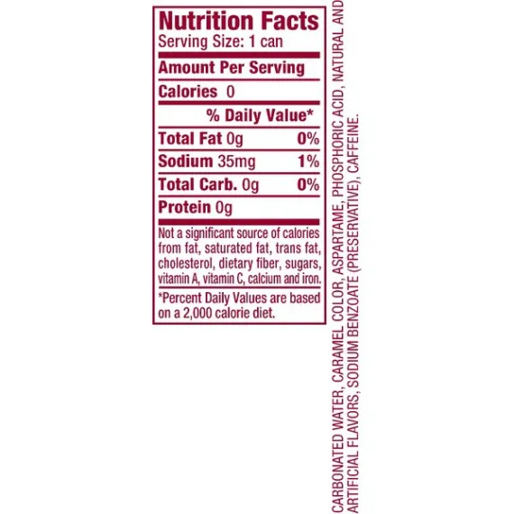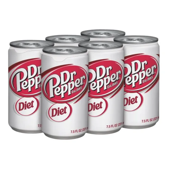Details Ingredients CARBONATED WATER, CARAMEL COLOR, ASPARTAME, PHOSPHORIC ACID, NATURAL AND ARTIFICIAL FLAVORS, SODIUM BENZOATE (PRESERVATIVE), CAFFEINE Show more Product features If you're looking for a soft drink with an authentically different taste, nothing satisfies quite like a Dr Pepper. Diet Dr Pepper has an original recipe of 23 signature flavors blended into one deliciously unique beverage that doesn't sacrifice great taste for zero calories. Established in 1885, Dr Pepper has an iconic history of delivering satisfying refreshment. Often imitated and never duplicated, Diet Dr Pepper is Always One of a Kind™. Zero calories per servingAlways One of a KindOne 6-pack of 7.5 fluid ounce cans Net Quantity of Content 6 X 7.5 fl oz