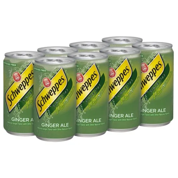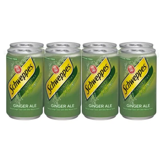 Details Ingredients CARBONATED WATER, HIGH FRUCTOSE CORN SYRUP, CITRIC ACID, SODIUM BENZOATE (PRESERVATIVE), CARAMEL COLOR, NATURAL FLAVORS Show more Product features Since 1783, Schweppes has been providing dependable, crisp and refreshing Ginger Ale that consumers have grown fond of. With its bold, natural flavor from ginger and lively bubbles, Schweppes Ginger Ale provides a refreshing carbonated beverage. It’s caffeine free making it the perfect choice for relaxing and recharging. Its ginger flavor and carbonation make it a crowd pleasing beverage choice, while also being a versatile mixer that can spark any occasion. With over 200 years of experience, Schweppes has become synonymous with dependability and the Ginger Ale consumers turn to when looking for versatility. Enjoy a refreshing Schweppes Ginger Ale today. Over 200 years of providing the perfect tasteCaffeine FreeLive ExcellentlyOne 8-pack of 7.5 fluid ounce cans Net Quantity of Content 8 X 7.5 fl oz