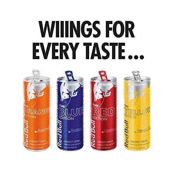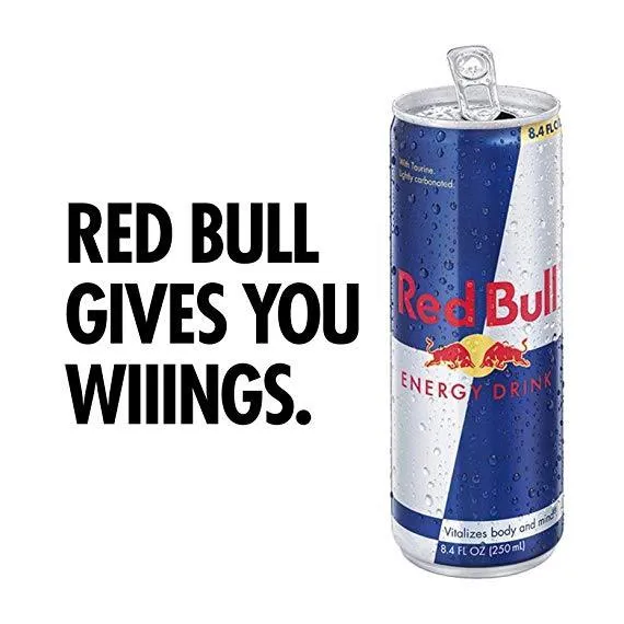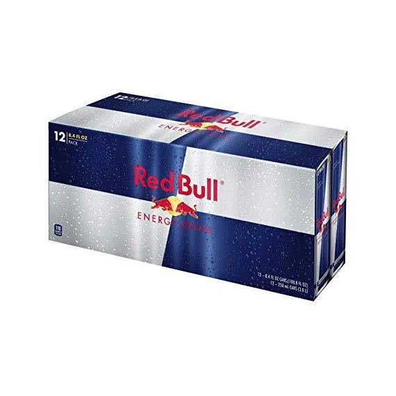 Details Ingredients Carbonated Water, Sucrose, Glucose, Citric Acid, Taurine, Sodium Bicarbonate, Magnesium Carbonate, Caffeine, Niacinamide, Calcium Pantothenate, Pyridoxine HCl, Vitamin B12, Natural and Artificial Flavors, Colors. Show more Product features Red Bull Gives You Wings In 1987, Red Bull not only launched a completely new product, it created a whole new product category — energy drinks. From day one, Red Bull has been giving wings to people and ideas, setting many milestones in sports and culture. When To Drink Red Bull is appreciated worldwide by top athletes, busy professionals, college students and travelers on long journeys. For those who wish to have Red Bull benefits without sugars: The sugar free Red Bull variety Red Bull Sugarfree provides the wings of Red Bull Energy Drink without sugars. Red Bull was the first global energy drink brand to address the consumer request for sugar free energy drinks and launched its Red Bull sugar free varieties. What's Inside The Can Caffeine: Caffeine has already been known for its stimulating effects on the human body by ancient civilizations who consumed it from natural sources like tea, coffee, cacao beans & cola nuts. Taurine: Taurine is an amino acid, naturally occurring in the human body and present in the daily diet. It is involved in a wide range of biological processes. B-group vitamins: Vitamins are essential micronutrients that are required for maintaining normal body functions. B-group vitamins play an important role in energy metabolism, such as the build-up and break-down of carbohydrates and protein. Sugars: Red Bull Energy Drink is made with real sugars. Sugars are well known carbohydrates and can be found in many foodstuffs from fruits and fruit juices to other beverages including energy drinks. 12 Red Bull Energy Drink You add to your basket 12 Red Bull Energy Drink, 8.4 Fl oz per can. Sustainability Red Bull is very aware of its environmental responsibility and is constantly striving for improvement. Red Bull has made a conscious decision to use 100% recyclable aluminium cans, and we developed our environmentally friendly Red Bull Coolers which use up to 45% less energy than conventional fridges. Special Features Improves performance, especially during times Of increased stress Net Quantity of Content 12 X 1 Can