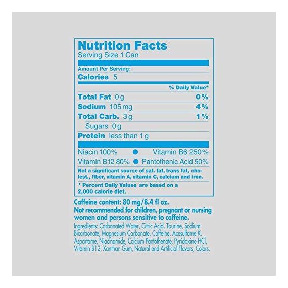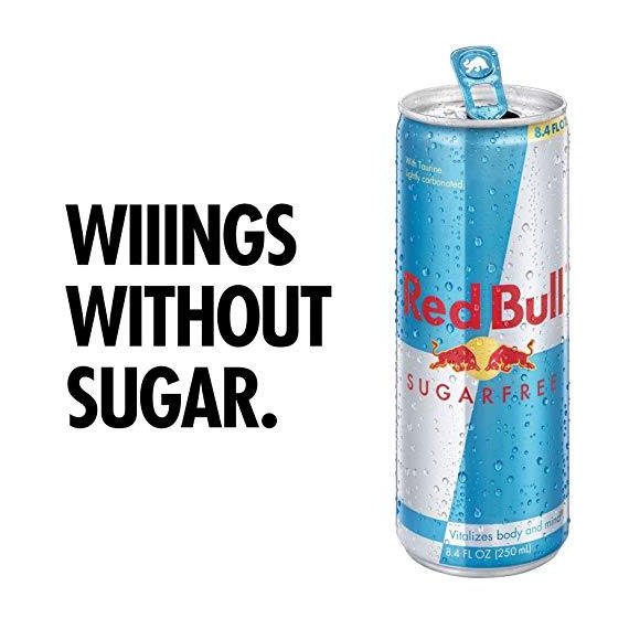 Details Ingredients Carbonated Water, Citric Acid, Taurine, Sodium Bicarbonate, Magnesium Carbonate, Caffeine, Acesulfame K, Aspartame, Niacinamide, Calcium Pantothenate, Pyridoxine HCl, Vitamin B12, Xanthan Gum, Natural and Artificial Flavors, Colors.Phenylketonurics: Contains Phenylalanine. Show more Product features Red Bull SUGARFREE. WINGS WITHOUT SUGAR. Red Bull Sugarfree is a carbonated beverage that provides the wings of a Red Bull Energy Drink without sugar and only 5 calories per 8.4-Fluid ounce can. WHEN TO DRINK Red Bull is a great energy drink to have by your side, and is appreciated throughout the world by top athletes and busy professionals to college students and travelers on long journeys. For those who need WINGS for intense meetings or creative brainstorming sessions, on the field with teammates or competitors, or simply want to get the most out of life, a chilled can of Red Bull Sugarfree Gives You Wings without sugar. WHAT'S INSIDE THE CAN Caffeine was well known for its stimulating effects by ancient civilizations who consumed it from natural sources like tea, coffee, cacao beans & cola nuts. Taurine is an amino acid, naturally occurring in the human body and present in commonly consumed foods. It is involved in a wide range of biological processes. B-Group Vitamins are essential micronutrients that are required for maintaining normal body functions Aspartame & Acesulfame K are among the most-tested and most-used sugar substitutes worldwide. Water Naturally, water is a key ingredient of Red Bull. WHAT YOU ADD TO YOUR BASKET Red Bull SUGARFREE pack of 12, 8.4-Fluid ounce per can Red Bull Sugarfree: Wings Without SugarRed Bull Sugarfree is a beverage perfect for when you're in need of wings without sugar and only 5 calories per 8.4-fluid ouncesMade with High-Quality Ingredients such as Caffeine, Taurine, B-Group Vitamins, Aspartame & Acesulfame K, WaterAdd this 12 Pack of Red Bull Sugarfree Energy Drink to your basket and get twelve Red Bull Sugarfree cans, 8.4 Fl Oz (250mL) per can, 100%-recyclable canRed Bull Vitalizes Body and Mind Special Features Improves performance, especially during times Of increased stress Net Quantity of Content 12 X 1 Can