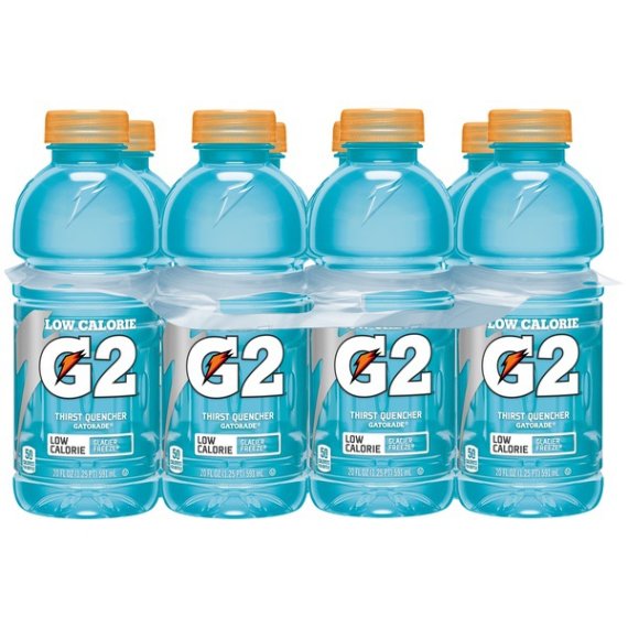 Details Ingredients Water, Sugar, Citric Acid, Natural Flavor, Salt, Sodium Citrate, Monopotassium Phosphate, Sucralose, Acesulfame Potassium, Blue 1 Product features Our lightest way to help replace what you sweat out. G2 hydrates with the same electrolyte formula of Gatorade Thirst Quencher, but has less than half the carbs and calories of the original G. Glacier Freeze Flavor. Replenishes better than water. When you sweat, you lose more than water. You also lose critical electrolytes, like sodium and potassium, which help the brain communicate with muscles and regulate fluid level balance throughout the body. Significant losses in fluids and electrolytes can negatively impact performance, especially during long bouts of training. With a legacy over 50 years in the making, it's the most scientifically researched and game-tested way to replace electrolytes lost in sweat. Gatorade Thirst Quencher hydrates better than water, which is why it's trusted by some of the world's best athletes. Net Quantity of Content 1 X 591 mL