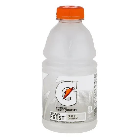Details Ingredients WATER, SUGAR, DEXTROSE, CITRIC ACID, NATURAL FLAVOR, SALT, SODIUM CITRATE, MONOPOTASSIUM PHOSPHATE, MODIFIED FOOD STARCH, GLYCEROL ESTER OF ROSIN. Show more Product features When you sweat, you lose more than water. You also lose critical electrolytes, like sodium and potassium, which help the brain communicate with muscles and regulate fluid level balance throughout the body. Significant losses in fluids and electrolytes can negatively impact performance, especially during long bouts of training. The one and only. With a legacy over 40 years in the making, it's the most scientifically researched and game-tested way to replace electrolytes lost in sweat. Gatorade Frost has a light, crisp flavor that hydrates better than water, which is why it's trusted by some of the world's best athletes. It contains critical electrolytes to help replace what's lost in sweat. 32 fl oz Frost Glacier Cherry Bottle. Net Quantity of Content ABOUT 2.5 X 12 fl oz