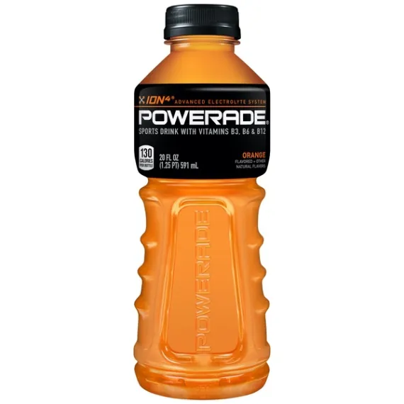 Details Ingredients Water, High Fructose Corn Syrup, less than 0.5% of: Citric Acid, Salt and Mono-Potassium Phosphate and Magnesium Chloride and Calcium Chloride (Electrolyte Sources), Gum Acacia, Natural Flavors, Glycerol Ester of Rosin, Yellow 5, Yellow 6, Vitamin B3 (Niacinamide), Vitamin B6 (Pyridoxine Hydrochloride), Vitamin B12, Ascorbic Acid (to protect taste), Calcium Disodium EDTA (to protect color). Show more Product features The ION4 Advanced Electrolyte System helps replenish four electrolytes lost in sweat. POWERADE is formulated with a 6% carbohydrate solution to help provide energy to working muscles, and vitamins B3, B6 and B12. Naturally flavored sports drink with B3, B6 and B12.Helps replenish four key electrolytes lost in sweatEight (8), 20 fl. Oz. bottles of Orange flavored sports drink with vitamins B3, B6 and B12Orange flavored and other natural flavorsAdvanced electrolyte system Net Quantity of Content 20 X 1.0