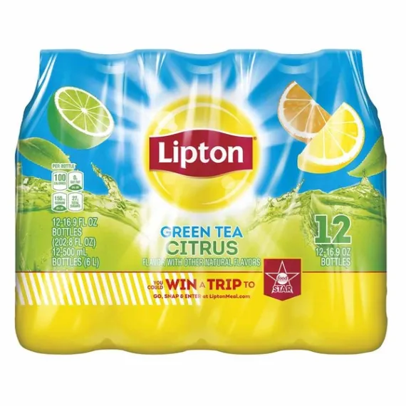 Details Ingredients Water, High Fructose Corn Syrup, Citric Acid, Natural Flavor, Sodium Hexametaphosphate to Protect Flavor , Green Tea, Ascorbic Acid Vitamin C , Potassium Sorbate Preserves Freshness , Phosphoric Acid, Sugar, Acesulfame Potassium, Calcium Disodium EDTA to Protect Flavor , Honey Show more Product features Lipton Green Tea with Citrus is the Lipton Iced Tea you want to have in the fridge when you're seeking instant refreshment. Our green tea is full of clean taste, vitality, and great flavor. Lipton Citrus Green Tea. Flavor with other natural flavors. Per bottle: 100 calories. 0g sat fat, 0% DV. 105mg sodium, 4% DV. 27g sugars. 12-16.9 oz bottles (202.8 fl oz). 12-500 ml bottles (6 L). Net Quantity of Content 12 X 1.0