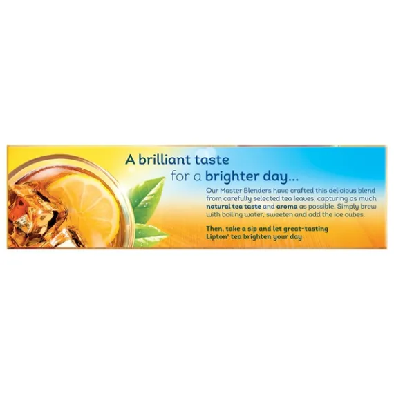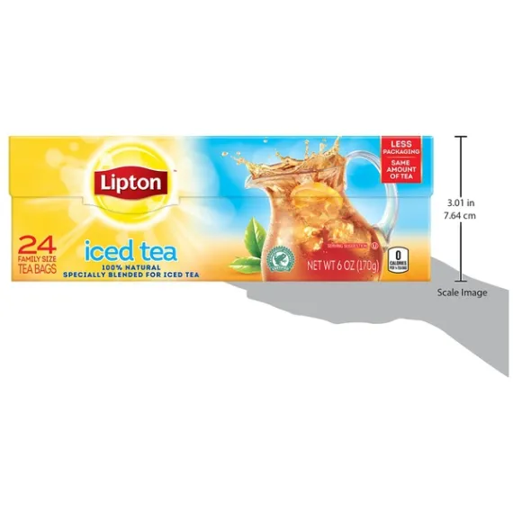 Details Ingredients Orange Pekoe, Pekoe Cut Black Tea Product features Easily brew crisp, refreshing Lipton black iced tea from these convenient family-size bags!. Using real tea leaves specially blended for iced tea, our Master Blenders crafted this refreshingly delicious blend, where we pick tea leaves at the peak of flavor and blend them to capture as much natural tea taste and aroma as possible. Lipton iced tea is the perfect addition for any of your meals because is naturally tasty and refreshing. So don’t just default to the usual, enjoy the superior taste of fresh-brewed tea and choose Lipton Iced Tea.For 1 gallon iced tea pitcher: simply brew two tea bags with 1 quart boiling water, brew 3 minutes, sweeten, add 3 quarts of fresh cold water and ice. Then sip and let great-tasting Lipton black iced tea brighten your day!To capture as much of the tea taste and aroma as possible, we have developed and innovative process where we press fresh, high-quality tea leaves to release their natural essence. We then use this essence on our blend.All our tea bags are 100% sustainably sourced, which translates into ensuring decent wages for tea farmers around the world together with access to quality housing, education and medical care. Your tea is their brighter future. Lipton Unsweetened Family Black Iced Tea Bags, 24 ct Refreshing Lipton black iced tea from these convenient family-size bags Made with real tea leaves specially blended for iced tea Naturally Tasty & Refreshing Lipton Black Iced Tea is the perfect addition to any meal Simply brew with boiling water, sweeten and add ice cubes Lipton Black Tea is made with only 100% Rainforest Alliance certified tea bags Makes 12 gallon iced tea pitchers Special Features 100% natural Net Quantity of Content 96 X 1.8 G