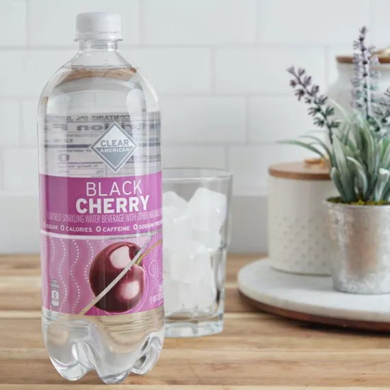 Details Ingredients CARBONATED WATER, CITRIC ACID, POTASSIUM CITRATE, NATURAL FLAVOR, ASPARTAME, POTASSIUM BENZOATE (PRESERVATIVE), ACESULFAME POTASSIUM. Show more Product features Clear American Black Cherry is a naturally-flavored sparkling water beverage that is crisp, delicious, and perfect for any occasion. This fruit-flavored bubbly water is delectably sweet from its black cherry flavor yet light and crisp for a smooth taste every time. Enjoy this fruit-flavored sparkling water on the go, in the office, or by the pool. It is a great option for health conscious individuals as it is naturally flavored and made without sugar, caffeine, calories, or sodium. Brighten your day with the smooth and refreshing taste of Clear American Black Cherry Sparkling Water. Clear American Black Cherry Sparkling Water, 33.8 fl oz: Refreshing taste of black cherry in every sip Free from caffeine, calories, sweeteners & sodium Flavored sparkling water with other natural flavors Oh so good 1-1 liter recyclable bottle Special Features Naturally flavored Net Quantity of Content ABOUT 3 X 12 fl oz