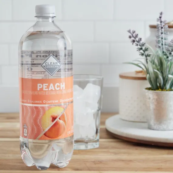 Details Ingredients CARBONATED WATER, CITRIC ACID, NATURAL FLAVOR, POTASSIUM CITRATE, ASPARTAME, POTASSIUM BENZOATE (PRESERVATIVE), ACESULFAME POTASSIUM. Show more Product features Keep a sizable amount of bubbly refreshment on hand for any time you need with Clear American Peach Sparkling Water. This sparkling water has a peach flavor to offer a light alternative to sugary sodas and other sweet drinks. This beverage is ideal for people looking to stick to healthy regimens since it has zero calories and no sugar, caffeine, or sodium. Cut up fresh peaches and serve them in this sparkling water for a touch of extra flavor. Use this in place of sugary mixers in your cocktails to stick to your healthy eating plan while you're out at social gatherings. The 33.8-fluid ounce bottle will help ensure that you have plenty of effervescent water on hand. Try Clear American Peach Sparkling Water and get the refreshment you want without the extra sugar or calories. Clear American Peach Sparkling Water, 33.8 fl oz: 33.8 fl oz per bottle Easy to use screw top Light peach flavor No calories, sugar, caffeine, or sodium Special Features Naturally flavored Net Quantity of Content ABOUT 3 X 12 fl oz
