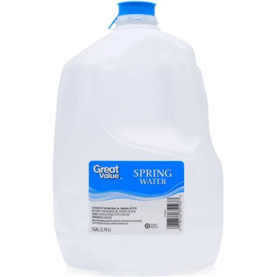 Details Ingredients Spring water Product features Quench your thirst with fresh and high-quality water with the Great Value Spring Water. With a gallon of this Great Value Spring Water, you can have extra drinking water on hand when needed at home. This spring water is also great for camping, traveling or even to keep on your desk at the office to make sure you stay hydrated. You are assured of its quality because this Great Value Spring Water is purified by ozonation. It is sourced from Basswood Springs at Platte County, Maryland. With its 1-gallon capacity, you can fill up multiple bottles or containers with a single purchase of this Great Value Spring Water. Great Value products provide families with affordable, high-quality grocery and household consumable options. With our wide range of product categories spanning grocery and household consumables, we offer you a variety of products for your family's needs. Our products are conveniently available online and in Walmart stores nationwide, allowing you to stock up and save money at the same time. Great Value Spring Water, 1 Gallon: Purified spring water Purified by ozonation Gallon size is perfect for keeping extra drinking water on hand Great for camping, traveling or even to keep on your desk at the office to make sure you stay hydrated Net Quantity of Content 16 X 240 mL