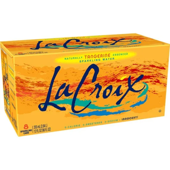 Details Ingredients ONLY CARBONATED WATER, NATURALLY ESSENCED. Product features LaCroix Sparkling Water is the #1 sparkling water brand. LaCroix is a refreshing and healthy beverage that can be enjoyed in any setting. Each sip of LaCroix Sparking Water is flavored with the natural essence oils extracted from the named fruit. It contains 0-calories, 0-sweetenersand 0-sodium. This means you can enjoy the refreshing taste of a carbonated beverage completely guilt-free. LaCroix sparkling water is vegan, gluten-free, non-GMO and Whole30 approved. Our water is sourced in the U.S.A. and has a lower carbon footprint compared to imported brands. The average person needs to drink eight 8-oz glasses of water a day, and with LaCroix Sparkling Water, each of those eight glasses can have a special, fruity essence that you will love! Enjoy LaCroix! LaCroix Sparkling Water - Tangerine, 8pk/12 fl oz Cans, 8 / Pack (Quantity) 8-PACK: Tangerine 12 oz cans, perfect for the fridge, office, or your next family get-together! HEALTHIER: Unlike sports drinks, vitamin enhanced waters, and sodas, LaCroix is a healthy for you, natural sparkling water with 0 calories, 0 sweeteners and 0 sodium. Each flavor comes from the natural essence oils of the named fruit with nothing artificial added. GUILT FREE: Drink with zero worries! LaCroix contains 0 calories, 0 sweeteners, and 0 sodium. Our sparkling water is vegan, gluten free, non-GMO, and Whole30 approved. Our drinks offer the perfect splash of refreshment for work and play. REFRESHING: LaCroix is a wholesome, refreshing sparkling water that you can feel good about sharing with your friends and family. Enjoy the delicious flavor at the gym, in the office or on the go! FUN: LaCroix is the perfect drink for every occasion. LaCroix Mocktail recipes even provide a splash of fun for your next party or get-together. Let LaCroix bring fun to your healthy lifestyle! Special Features Gluten-free, Non-GMO, Calorie-free, Sodium-free Net Quantity of Content 8 X 355 mL