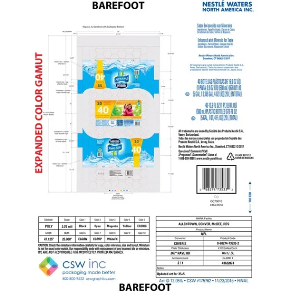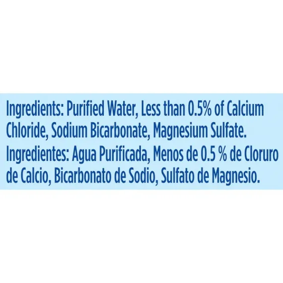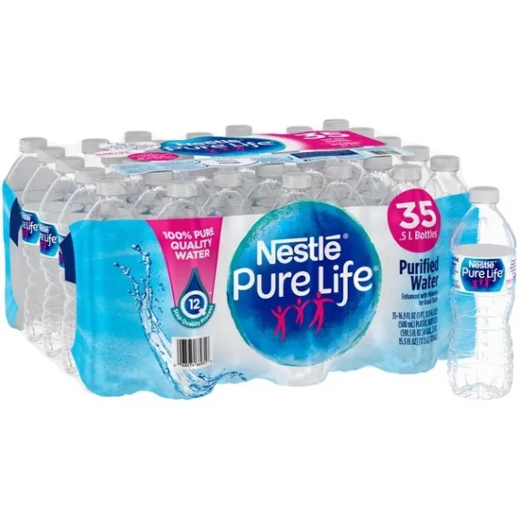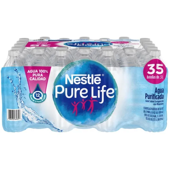 Details Ingredients Purified Water, Less than 0.5% of Calcium Chloride, Sodium Bicarbonate, Magnesium Sulfate. Product features As the #1 bottled water brand in the United States, Nestle Pure Life is on a mission to help families lead healthier lives through proper hydration. Our commitment to excellence is put into practice every day, as our water undergoes a 12-step quality process. Then, we enhance our purified water with a unique blend of minerals for great taste. So make NESTLE PURE LIFE bottled water part of your family’s routine. It’s an easy, effective way to help adopt a healthier lifestyle. 16.9-ounce/.5-Liter plastic bottles, perfect to take for lunch or bring to workHandy 35-Pack: stock up for everyday family needs or large family gatheringsZero calories, no sweeteners and no artificial colors or flavors: a healthy alternative to sugary drinksNESTLE PURE LIFE is serious about water quality, which is why our water undergoes a 12-step quality processIts clean, crisp taste makes it a family favoriteNESTLE PURE LIFE is an easy and effective way to help your family adopt a healthier lifestyle Net Quantity of Content 2.5 X 8 Oz
