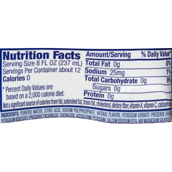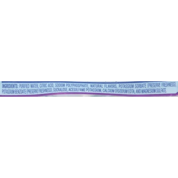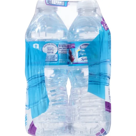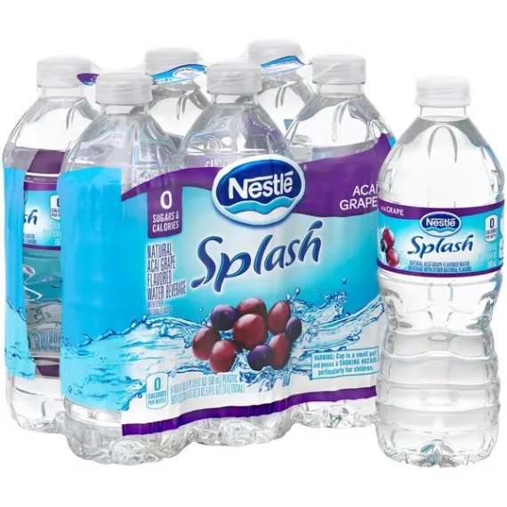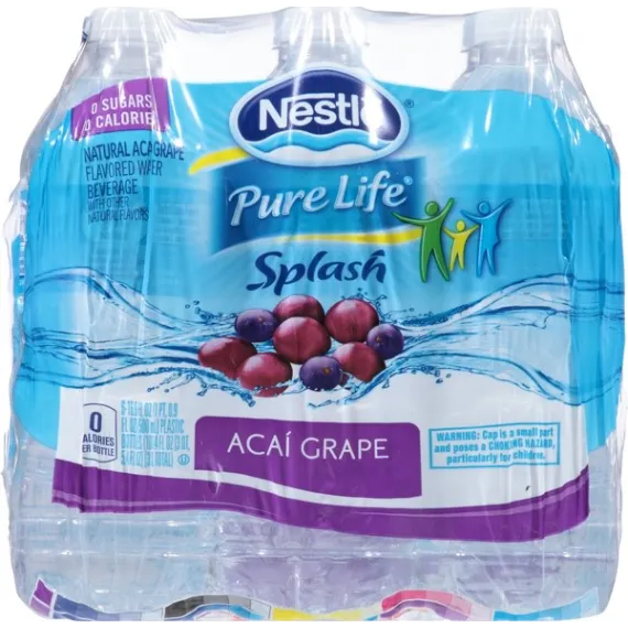 Details Ingredients Purified Water, Citric Acid, Sodium Polyphosphate, Natural Flavors, Potassium Sorbate (Preserve Freshness), Potassium Benzoate (Preserve Freshness), Sucralose, Acesulfame Potassium, Calcium Disodium EDTA, Magnesium Sulfate. Show more Product features It’s fun to stay hydrated with Acai Grape Nestle Splash, combining the delightful vibrant flavor of the acai berry with the sweet goodness of grape flavor. Nestle Splash is a blend of purified water, light sweetness and natural fruit flavor. This thirst-quenching bottled beverage is also a smart alternative to sugary drinks, with no sugar and zero calories. Try it, and add a splash of flavor to your family’s daily hydration. 16.9-ounce/.5-Liter plastic bottles, perfect to take for lunch or bring to work6-Pack: enjoy with lunch all week longA light splash of natural Acai Grape fruit flavors makes it fun to stay hydratedContains zero-calorie sweeteners, so you get all the enjoyment but none of the caloriesA smart alternative to sugared beverages Net Quantity of Content 12.0 X 8 fl. oz. (237mL)