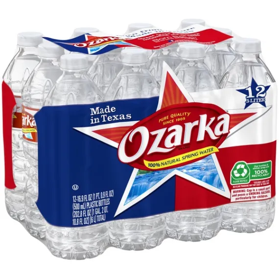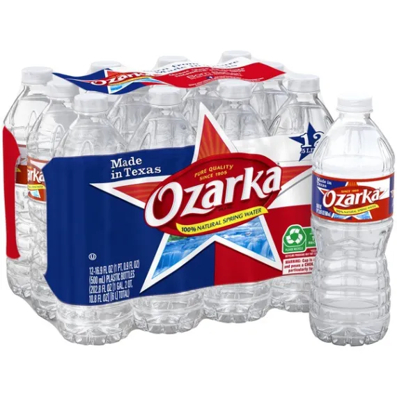 Details Product features Ozarka Brand 100% Natural Spring Water, established in 1905, has been a local favorite for generations. Sourced from carefully selected springs in Texas, Ozarka spring water contains naturally occurring minerals for a crisp, refreshing taste. So when you’re looking for a trusted source of hydration for any occasion, choose OZARKA. 12-Pack Stores Easily in Refrigerator, Available for Everyday Hydration Needs16.9 oz. /.5L Plastic Bottle: Easy to Take Along in a Purse or Backpack