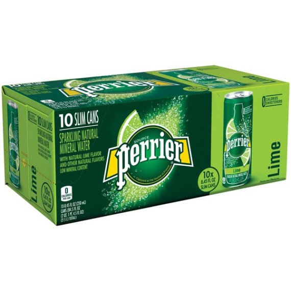 Details Ingredients Carbonated Mineral Water, Natural Flavors. Product features Stylish. Bold. Daring. PERRIER Sparkling Natural Mineral Water Lime inspires the imagination and stimulates the senses with its subtle, citrusy lime zing flavor. Ingredients include carbonated mineral water and natural flavors. A sparkling fusion of air and water, PERRIER has been bottled from a single source in the South of France since 1853. Its iconic bubbles and unique mineral composition thoroughly quench thirst with zero calories or sweeteners. It's a wonderful choice to add zest to your morning or serve as an afternoon refresher. It’s a delicious alternative to soft drinks and a sophisticated choice to satisfy your thirst. Packaged in 8.4 fl oz, 10-pack, slim cans. Keep Perrier mineral water in a clean, cool, dry and odorless place away from direct sunlight. Perrier Sparkling Natural Mineral Water, Lime, 8.4 fl oz, 10 Count: Sleek 8.45 oz/250 ml slim can is ideal for on-the-go refreshment 10-pack fits easily on refrigerator shelf, chilled and ready to enjoy Savor its subtle, citrusy lime flavor with zero calories and zero sweeteners Its invigorating bubbles and unique mineral composition make for a crisp, thirst-quenching beverage Serves as a mixer for cocktails Lime mineral water to be kept in a cool, odorless and dry place Fits your workout as well as your highball PERRIER Carbonated Mineral Water has delighted people worldwide for more than 150 years Net Quantity of Content 10.0 X 1 Can (250mL)