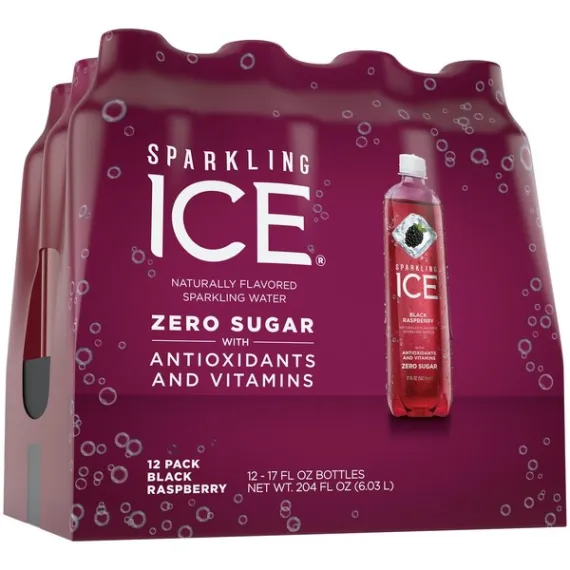 Details Ingredients CARBONATED WATER, NATURAL FLAVORS, MALIC ACID, VEGETABLE JUICE (FOR COLOR), BLACKBERRY JUICE CONCENTRATE, POTASSIUM BENZOATE (TO ENSURE FRESHNESS), SUCRALOSE, GUM ARABIC, GREEN TEA EXTRACT, BIOTIN, NIACINAMIDE (VITAMIN B3), VITAMIN A, CALCIUM PANTOTHENATE (VITAMIN B5), VITAMIN B12, VITAMIN D3, PYRIDOXINE HYDROCHLORIDE (VITAMIN B6) Show more Product features Sparkling Ice® is a fizzy and flavorful sparkling water—without all the calories. This best-selling, succulent flavor makes for one sweet experience. We call it Black Raspberry, but you can call it delicious. Bursting with real fruit flavor Put a little fizz in your day Zero Sugar Zero calories, Zero guilt Contains Antioxidants and Vitamins Contains 1% Juice Net Quantity of Content ABOUT 24 X 8 Fluid Ounces