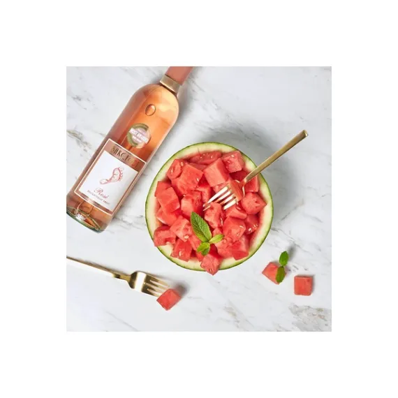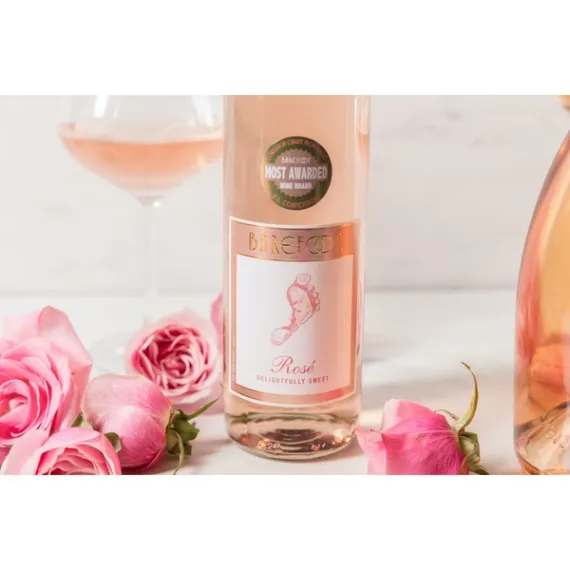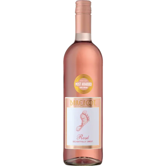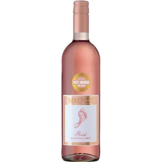 Details Ingredients Rosé Wine. Product features Juicy and smooth with aromas and flavors of watermelon, strawberries, and sweet cherries. Hints of nectarine and jasmine balance the sweet lime finish. Refreshing, light and slightly sweet Flavors of watermelon, strawberries and cherries Easy to open screw cap Delightfully sweet. Life’s more fun when we’re together. That’s why Barefoot has something for everyone, with delicious wines that will have you reaching for another sip. 750 ml.