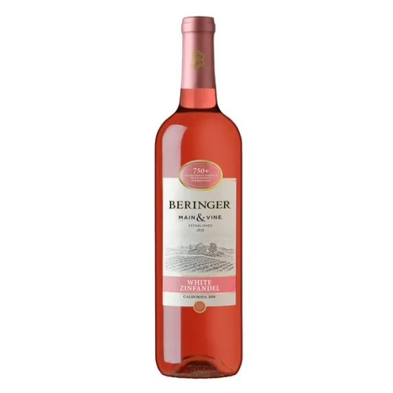 Details Ingredients NA Product features Nearly every town, both big and small, has a “Main Street”, the lifeblood of American towns, where the city’s best shops can be found and where residents of the city congregate. Main & Vine wine is made for bringing people together. Much like Main Street, all are welcome to gather together to make all of life’s moments more memorable. • In making Beringer's White Zinfandel, the focus is to highlight the fresh red berry, citrus and melon aromas and flavors, and round them out with subtle hints of nutmeg and clove. • Grapes for Beringer Classics White Zinfandel were picked at the peak of maturity and brought into the winery for gentle crushing. By keeping the juice in contact with the grape's red skins for approximately 3 hours, a light blush color was retained. Beringer's winemakers then used slow, cool fermentations to preserve the vibrant, fresh strawberry, honeydew, and citrus aromas and flavors. Special Features Fresh red berry, citrus And melon aromas And flavors