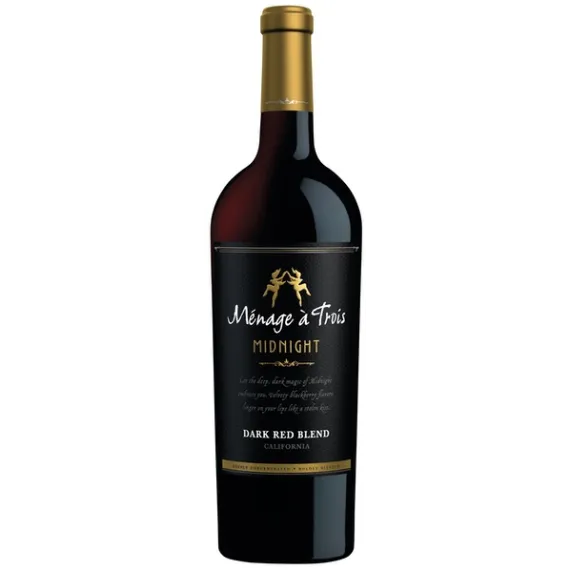 Details Ingredients California Merlot grapes, California Cabernet Sauvignon grapes, California Petite Sirah grapes, California Petit Verdot grapes Product features Menage a Trois Midnight, Dark Red Wine Blend 750ML Discover the dark side of Menage a Trois with Midnight, a luxurious dark red blend sure to satisfy your deepest desires. Voluptuous black cherry and berry flavors with hints of mocha and exotic spice play across your lips, urging you to turn out the lights and savor the pleasures of the dark. Our winemakers are definitely not afraid of the dark. For this special wine, they wanted to create a truly uninhibited blend something deeper, darker, and bolder than ever before. In true Menage a Trois style, they decided that more is more and crafted a blend of not three but four grapes! Merlot adds a plush, velvety texture, Cabernet Sauvignon offers elegance and power, Petite Sirah lends inky intensity and Petit Verdot imparts a deep violet color and concentrated fruit. To round out the flavors the wine is aged on French and American oak. The result is a wine that leaves an indelible impression. It's mysterious and dark, soft and sensual just like Midnight. The time has come to explore your deepest, darkest desires with Menage a Trois Midnight. A gorgeous garnet color in the glass, this luxurious blend wraps you up in a velvety embrace. Voluptuous blackberry and plush spiced plum flavors seduce your palate, while hints of mocha and exotic spice linger on your lips like a stolen kiss. Silky and smooth with a long, powerful finish, you'll wish Midnight could last forever. Menage a Trois Midnight, Dark Red Wine Blend 750ML Discover the dark side of Menage a Trois with Midnight, a luxurious dark red blend sure to satisfy your deepest desires. Voluptuous black cherry and berry flavors with hints of mocha and exotic spice play across your lips, urging you to turn out the lights and savor the pleasures of the dark. Our winemakers are definitely not afraid of the dark. For this special wine, they wanted to create a truly uninhibited blend something deeper, darker, and bolder than ever before. In true Menage a Trois style, they decided that more is more and crafted a blend of not three but four grapes! Merlot adds a plush, velvety texture, Cabernet Sauvignon offers elegance and power, Petite Sirah lends inky intensity and Petit Verdot imparts a deep violet color and concentrated fruit. To round out the flavors the wine is aged on French and American oak. The result is a wine that leaves an indelible impression. It's mysterious and dark, soft and sensual just like Midnight. The time has come to explore your deepest, darkest desires with Menage a Trois Midnight. A gorgeous garnet color in the glass, this luxurious blend wraps you up in a velvety embrace. Voluptuous blackberry and plush spiced plum flavors seduce your palate, while hints of mocha and exotic spice linger on your lips like a stolen kiss. Silky and smooth with a long, powerful finish, you'll wish Midnight could last forever. Special Features Let the deep, dark magic of midnight embrace you. Velvety blackberry and plush spiced plum flavors linger on your lips like a stolen kiss. Hand crafted in small batches. Discover the dark side of Menage a Trois with midnight, a luxurious dark red blend sure to satisfy your deepest desires. Voluptuous black cherry and berry flavors with hints of mocha and exotic spice play across your lips, urging you to turn out the lights and savor the pleasures of the dark. www.menageatroiswines.com. Alc 13.5% by vol. Vinted and bottled by Folie A Deux Winery St Helena, Napa County, CA 94574.