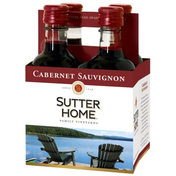 Details Ingredients Sulfites. Product features Sutter Home Cabernet Sauvignon is an intense ruby color, with fragrant aromas of fresh red cherries, sweet vanilla and light herbal notes. Bold and powerful with an elegant structure, this wine offers seamlessly integrated flavors, highlighted by juicy cherries and blackcurrants with a hint of toasted oak. It's exceptionally smooth and rich on the palate, giving way to a full, graceful finish. Our Cabernet Sauvignon is approachable, food-friendly and pairs perfectly with roast chicken, braised lamb shanks, mildly-seasoned pastas and grilled steaks. Winemaking To enhance our Cabernet Sauvignon's bright cherry aromas and soft mouthfeel, the juice undergoes 100% malolactic fermentation. Winemakers then age the wine in American oak tanks and casks to add additional body, character and toasted vanilla notes that beautifully complement the fruit flavors. Vineyard Information Our Cabernet Sauvignon is crafted with grapes harvested from premium vineyards in California's esteemed Lodi region, where warm, sunny days are tempered by cool afternoon breezes from the San Francisco Bay an ideal environment for producing Cabernet Sauvignon with balanced, juicy fruit flavors. Sutter Home Cabernet Sauvignon: Hearty red wine Bold taste Special Features Since 1948. Family owned since 1948. We're pleased to offer you Sutter Home quality and taste in these convenient single-serve bottles. It's delicious wine - one glass at a time! Just right for whenever you want an individual portion of our award-winning premium varietal wines. For more information, visit us at: www.sutterhome.com. Planet Wise Pak: 100% recyclable. Packaging with a conscience. Sutter Home maintains the same high quality of wine while providing unbreakable bottles that are safe, convenient and sustainable. Used exclusively by Sutter Home, these bottles use innovative technology with cutting-edge recyclable materials. This four-pack carrier is recyclable, as are the 187 ml of bottles and their aluminum capsules. The aluminum ring remaining on the bottle after opening will be separated from the bottle at the recycling center. Visit us at www.sutterhome.com. Alc. 13.0% by vol. Vinted and bottled by Sutter Home Winery, Inc. Napa, CA 94589.