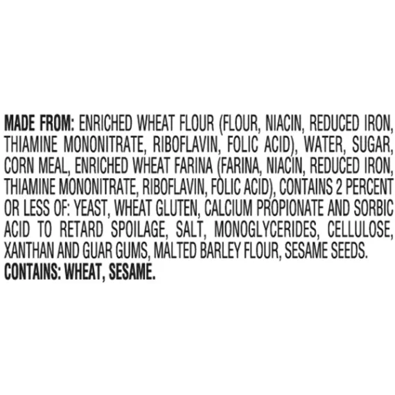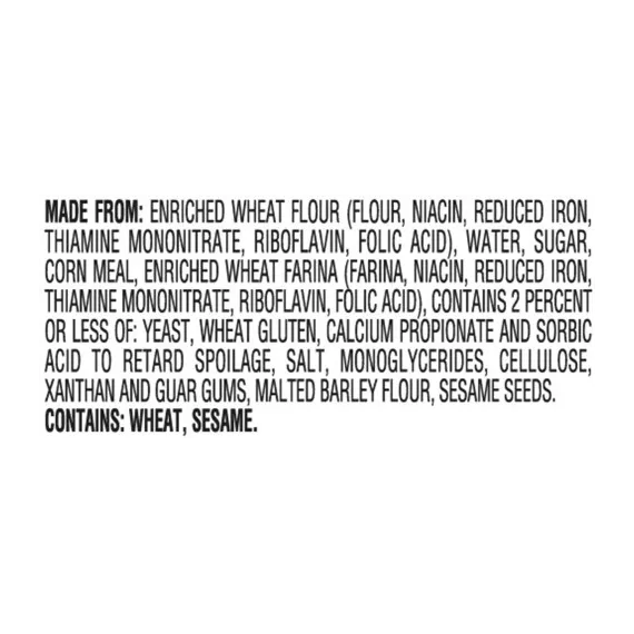 Details Ingredients Made From: Enriched Wheat Flour (Flour, Niacin, Reduced Iron, Thiamine Mononitrate, Riboflavin, Folic Acid), Water, Sugar, Corn Meal, Enriched Wheat Farina (Farina, Niacin, Reduced Iron, Thiamine Mononitrate, Riboflavin, Folic Acid), Contains 2 Percent Or Less Of: Yeast, Wheat Gluten, Calcium Propionate And Sorbic Acid To Retard Spoilage, Salt, Monoglycerides, Cellulose, Xanthan And Guar Gums, Malted Barley Flour, Sesame Seeds. Contains: Wheat, Sesame. Show more Product features Carefully prepared by our expert bakers, Pepperidge Farm Mini Bagels are just the right blend of wholesome and delicious. The secret is in the way they're made. We use only the finest quality ingredients and then we boil and bake them to perfection, so they're soft and chewy on the inside, with a golden crust on the outside. Pre-sliced for your convenience, you can enjoy them toasted or right out of the bag; top them with your favorite spread, or add a tasty filling for the perfect sandwich. Pepperidge Farm Mini Bagels are perfect any time of the day! Mini Plain Bagel Low Fat Cholesterol Free 0g trans fat per serving 17 oz., 12 count pre-sliced bag Special Features Cholesterol free Net Quantity of Content 12.0 X 1 Bagel (40g/1.4 oz.)
