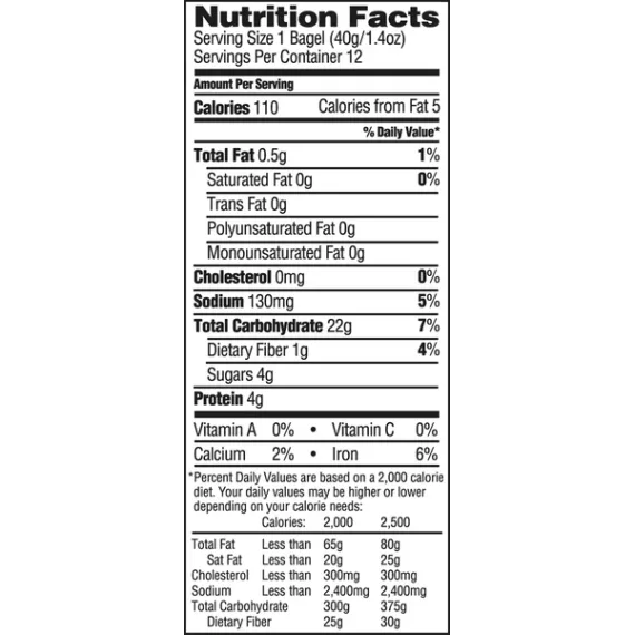 1 Bagel (40g/1.4 oz.)