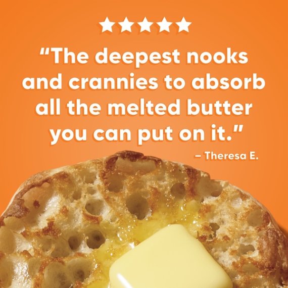 Details Ingredients Enriched Wheat Flour [Flour, Malted Barley Flour, Reduced Iron, Niacin, Thiamin Mononitrate (Vitamin B1), Riboflavin (Vitamin B2), Folic Acid], Water, Farina, Yeast, Salt, Sugar, Calcium Propionate And Sorbic Acid (To Preserve Freshness), Soybean Oil, Wheat Gluten, Grain Vinegar, Soy Lecithin, Soy, Whey. Show more Product features Thomas Original English Muffins have the butter pooling, Nooks & Crannies texture that you love. Simply like no other, theyre crispy on the edges and chewy in the middle with a delicious taste you cant resist. Try them today and be part of a tradition of quality that Thomas has been proudly serving up to families like yours for more than 135 years. Each tray contains 6 fork-split English Muffins Nooks & Crannies texture that toasts up crispy on the edges and soft in the middle Baked with high-quality ingredients Enjoy with your favorite spread (we suggest butter or cream cheese) or as a sandwich, burger, personal pizza and more! Create the perfect breakfast sandwich with sausage, eggs & cheese and a toasted Thomas' English Muffin Special Features No high fructose corn syrup Net Quantity of Content 6.0 X 1 muffin