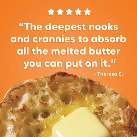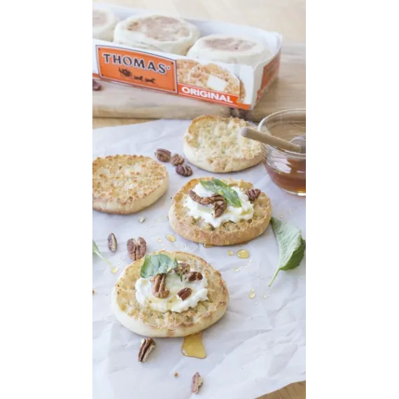 Details Ingredients Enriched Wheat Flour [Flour, Malted Barley Flour, Reduced Iron, Niacin, Thiamin Mononitrate (Vitamin B1), Riboflavin (Vitamin B2), Folic Acid], Water, Farina, Yeast, Salt, Sugar, Calcium Propionate And Sorbic Acid (To Preserve Freshness), Soybean Oil, Wheat Gluten, Grain Vinegar, Soy Lecithin, Soy, Whey. Show more Product features Thomas Original English Muffins have the butter pooling, Nooks & Crannies texture that you love. Simply like no other, theyre crispy on the edges and chewy in the middle with a delicious taste you cant resist. Try them today and be part of a tradition of quality that Thomas has been proudly serving up to families like yours for more than 135 years. Each tray contains 6 fork-split English Muffins Nooks & Crannies texture that toasts up crispy on the edges and soft in the middle Baked with high-quality ingredients Enjoy with your favorite spread (we suggest butter or cream cheese) or as a sandwich, burger, personal pizza and more! Create the perfect breakfast sandwich with sausage, eggs & cheese and a toasted Thomas' English Muffin Special Features No high fructose corn syrup Net Quantity of Content 6.0 X 1 muffin