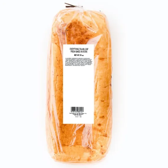 Details Ingredients Enriched Flour (Wheat Flour, Malted Barley Flour Niacin, Ferrous Sulfate, Thiamin Mononitrate, Riboflavin, Folic Acid), Water, Yeast Contains 2% or Less of Salt, Sugar, Soybean Dil, Datem, Calcium Sulfate, Ascorbic Acid, Ammonium Sulfate, Enzymes, Vital, wheat Gulten, Toppings Salt, Dehydrated Garlic, Dehydratedonion, Poppy Seeds, Sesame Seeds. Show more Product features Freshness Guaranteed Everything Italian Loaf is the perfect bread to pair with any meal. The bread is covered with a great tasting seasoning blend that gives it a familiar taste similar to an everything bagel. This loaf is great for making hand crafted sandwiches piled high with your favorite meats, veggies and cheeses. Use to make garlic bread and serve with your favorite Italian pasta. It comes in a clear bag twisted at the top intended to keep this bread fresh until it is consumed. Enjoy fresh from the bakery taste with the Freshness Guaranteed Everything Italian Loaf. Freshness Guaranteed Everything Italian Loaf: Bread topped with savory blend of everything seasoning Baked fresh in store Perfect for meals Net weight 14 oz Special Features No artificial preservatives, colors, or flavors Net Quantity of Content 10 X 47 g