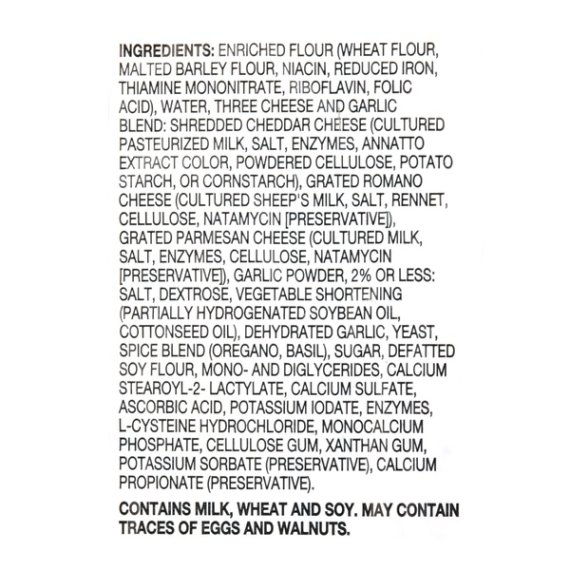Details Product features The Bakery at Walmart 3-Cheese Garlic Breadsticks are a delicious treat for the whole family. They make for a good side dish for many Italian inspired dishes like pizza or pasta. These breadsticks are baked and filled with three different kinds of cheese. These include cheddar, Romano and parmesan cheeses. These Walmart cheese-filled breadsticks are also seasoned with garlic for an extra touch of flavor. They're ready to eat and save you time doing extra cooking. This food is free of trans fat and has 1.5g of total fat per serving. The Bakery at Walmart 3-Cheese Garlic Breadsticks: Made with romano, cheddar and parmesan cheeses 3-cheese garlic bread is ready to eat Free of trans fat 1.5g of total fat per serving Seasoned with garlic for extra flavor