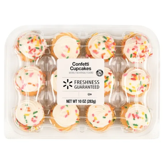 This Product Is Manufactured In A Nut Free Facility. Show more Product features Treat yourself to a bite of Freshness Guaranteed Confetti Cupcakes. These fun-filled cupcakes feature a moist vanilla cake mixed with sprinkles. They have a creamy vanilla frosting and topped colorful sprinkles for an extra-special touch. These bite-sized cupcakes are great to serve to guests at your next party or get together, bringing to a friend's house, sharing with co-workers, or a sweet treat to indulge in on any day. The cupcakes come in a reclosable container for convenience and to help maintain freshness in between snacking. The container comes with 12 bite-sized cupcakes so there is plenty to share. Satisfy your sweet tooth with Freshness Guaranteed Confetti Cupcakes. Freshness Guaranteed provides you and your family with high quality fresh food that save you time and money, many of which are cooked fresh or prepared in stores. Convenient solutions with value added in every Spark Fresh item. Freshness Guaranteed Confetti Cupcakes, 10 oz, 12 Count: Contains 12 bite-sized cupcakes Moist vanilla cake topped with vanilla frosting Topped with colorful sprinkles Reclosable container to help maintain freshness Great to serve to guests at your next party or get together Made in a peanut-free facility Net Quantity of Content 4 X 71 G