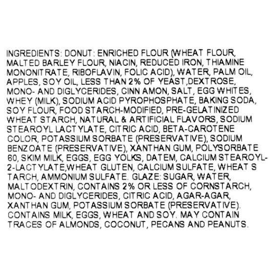 Details Ingredients Donut: Enriched Flour (Wheat Flour, Malted Barley Flour, Niacin, Reduced Iron, Thiamine Mononitrate, Riboflavin, Folic Acid), Water, Palm Oil, Apples, Soy Oil, Less Than 2% Of Yeast, Dextrose, Mono- And Diglycerides, Cinnamon, Salt, Egg Whites, Whey (Milk), Sodium Acid Pyrophosphate, Baking Soda, Soy Flour, Food Starch-Modified, Pre-Gelatinized Wheat Starch, Natural & Artificial Flavors, Sodium, Stearoyl Lactylate, Citric Acid, Beta-Carotene, Color, Potassium Sorbate (Preservative), Sodium Benzoate (Preservative), Xanthan Gum, Polysorbate 60, Skim Milk, Eggs, Egg Yolks, Datem, Calcium Stearoyl-2-Lactylate, Wheat Gluten, Calcium Sulfate, Wheat Starch, Ammonium Sulfate. Glaze: Sugar, Water, Maltodextrin, Contains 2% Or Less Of Cornstarch, Mono- And Diglycerides, Citric Acid, Agar-Agar, Xanthan Gum, Potassium Sorbate (Preservative). Show more Product features Treat your taste buds to a Freshness Guaranteed Apple Fritter. These fritters feature delicious doughnut bottom with a blend of cinnamon and apple, and they are topped with a delicious glaze to ensure a mouthful of sweetness in every bite. Freshness Guaranteed apple fritters are a great addition to any breakfast table, and they’re easy to grab on the go and enjoy with a fresh cup of coffee or a glass of cold milk. For an extra special treat served warmed up with a scoop of creamy vanilla ice cream. These fritters are also perfect to serve as you entertain guests, bring to a friend's house, share with coworkers or for a delicious treat to indulge in on any given day. This box comes with 6 apple fritters so there is plenty to share. The fritters come in a reclosable box to help maintain freshness between snacking. Satisfy your sweet tooth with a Freshness Guaranteed Apple Fritter. Freshness Guaranteed provides you and your family with high quality fresh food that save you time and money, many of which are cooked fresh or prepared in stores. Convenient solutions with value added in every Spark Fresh item. Freshness Guaranteed Apple Fritters, 6 Count: Grab on the go and enjoy with a cup of coffee Dough bottom topped with blend of cinnamon and apple Topped with a sweet glaze Great addition to the breakfast table Reclosable box to help maintain freshness Allergy Notice Our stores may use some of the following ingredients: peanuts, eggs, soy, tree nuts, wheat, dairy products, fish, and/or shellfish. Even if these are not listed on the ingredient label, please be aware that all products may have come in contact with these ingredients.