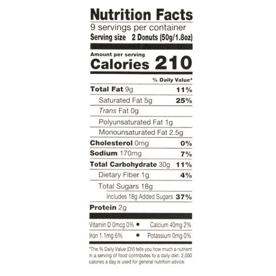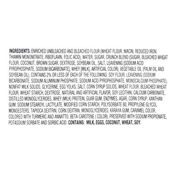 Details Ingredients Enriched Unbleached And Bleached Flour (Wheat Flour, Niacin, Reduced Iron, Thiamin Mononitrate, Riboflavin, Folic Acid), Water, Sugar, Crunch Blend (Sugar, Bleached Wheat Flour, Coconut, Brown Sugar, Dextrose, Soybean Oil, Salt, Leavening [Sodium Acid Pyrophosphate, Sodium Bicarbonate], Whey [Milk], Artificial Color), Vegetable Oil (Palm Oil And Soybean Oil), Contains 2% Or Less Of Each Of The Following: Soy Flour, Leavening (Sodium Bicarbonate, Sodium Aluminum Phosphate, Sodium Acid Pyrophosphate, Monocalcium Phosphate), Nonfat Milk Solids, Glycerine, Egg Yolks, Salt, Corn Syrup Solids, Wheat Flour, Bleached Wheat Flour, Wheat Starch, Dextrose, Natural And Artificial Flavor, Soy Lecithin, Calcium Carbonate, Distilled Monoglycerides, Whey (Milk) Protein, Guar Gum, Enzymes, Agar, Corn Syrup, Xanthan Gum, Sodium Stearoyl Lactylate, Modified Corn Starch, Polysorbate 80, Propylene Glycol Monoesters, Tapioca Dextrin, Corn Dextrin, Monoglycerides, Karaya Gum, Caramel Color, Colored With Turmeric And Annatto, Beta-Carotene ( Color), Preserved With Sodium Propionate, Potassium Sorbate And Sorbic Acid Show more Product features Enjoy a sweet treat with Freshness Guaranteed Coconut Crunch Mini Donuts. These treats feature a moist, rich donut covered in sweet, crunchy coconut. Freshness Guaranteed coconut crunch donuts are a great addition to any breakfast table. They're easy to grab on the go and enjoy with a fresh cup of coffee or a glass of cold milk. These coconut crunch mini donuts are perfect for a tasty snack, to serve as you entertain guests, bring to a friend's house, share with coworkers or for a delicious treat to indulge in on any given day. This box comes with about 18 donuts so there is plenty for everyone. They come in an easy open/close contain to help maintain freshness for continued enjoyment. Satisfy your sweet tooth with Freshness Guaranteed Coconut Crunch Mini Donuts. Freshness Guaranteed provides you and your family with high-quality fresh food that saves you time and money, many of which are cooked fresh or prepared in stores. Convenient solutions with value added in every Spark Fresh item. p> Freshness Guaranteed Coconut Crunch Mini Donuts, 16 oz: Moist, rich donut covered in sweet, crunchy coconut Contains about 18 donuts Delicious sweet treat Perfect for serving guests Great to bring to a friend's house Easy open/close contain to help maintain freshness Net Quantity of Content 9 X 2 Donuts (50g/1.8oz)