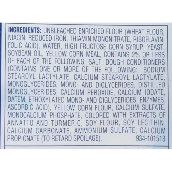 Details Ingredients Unbleached Enriched Flour (Wheat Flour, Niacin, Reduced Iron, Thiamin Mononitrate, Riboflavin, Folic Acid), Water, High Fructose Corn Syrup, Yeast, Soybean Oil, Yellow Corn Meal, Contains 2% or Less of Each of the Following: Salt, Dough Conditioners (Contains One or More of the Following: Sodium Stearoyl Lactylate, Calcium Stearoyl Lactylate, Monoglycerides, Mono- and Diglycerides, Distilled Monoglycerides, Calcium Peroxide, Calcium Iodate, DATEM, Ethoxylated Mono- and Diglycerides, Enzymes, Ascorbic Acid), Yellow Corn Flour, Calcium Sulfate, Monocalcium Phosphate, Colored with Extracts of Annatto and Turmeric, Soy Flour, Soy Lecithin, Calcium Carbonate, Ammonium Sulfate, Calcium Propionate (to Retard Spoilage). Show more Product features CBC Quality Pledge Great sandwiches deserve great bread. Sure we know great bread – it's our middle name, after all – and we've been perfecting the art of making bread since we opened our very first bakery. We are a passionate group of food enthusiasts who adore sandwiches and only make the kind of bread we'd proudly serve our friends and family. Our products, as always, are crafted with care, better when shared. That's just the CBC way. 8 Count Net Quantity of Content 8.0 X 1 Roll (53g/1.9 Oz.)