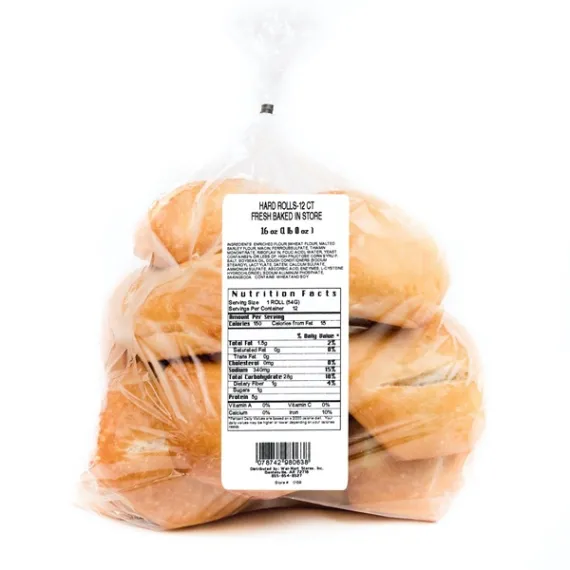Details Ingredients Enriched Flour (Wheat Flour, Malted Barley Flour, Niacin Ferroussulfate, Thiamin Mononitrate, Riboflavin, Folic Acid), Water, Yeast Contains 2% or Less of High Fructose Corn Syrup, Salt, Soybean Oil, Cough Conditioners (Sodium Stearoyl Lactylate, Datem, Calcium Sulfate, Ammonium Sulfate, Ascorbic Acid, Enzymes, L-cysteine Hydrochloride). Sodium Aluminium Phosphate, Bakingsoda. Show more Product features Freshness Guaranteed Hard Rolls are a classically delicious bread that is baked fresh in store. These bread rolls are perfect as a side item or used as an ingredient in home cooked meals. Use them to make hand-crafted sandwiches or burger sliders piled high with all your favorite meats, veggies and condiments. Hollow out, brush with olive oil and fill with your favorite piping hot soup, stew or dip. This pack comes with 12 rolls, making it easy to feed a crowd. Enjoy fresh from the bakery taste in the comfort of your home with Freshness Guaranteed Hard Rolls. The Bakery At Walmart Hard Rolls: