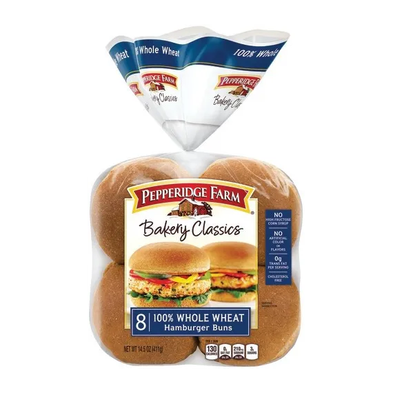 Pepperidge Farm Bakery Classics 100% Whole Wheat Hamburger Buns, 14.5 oz. Bag, 8-pack